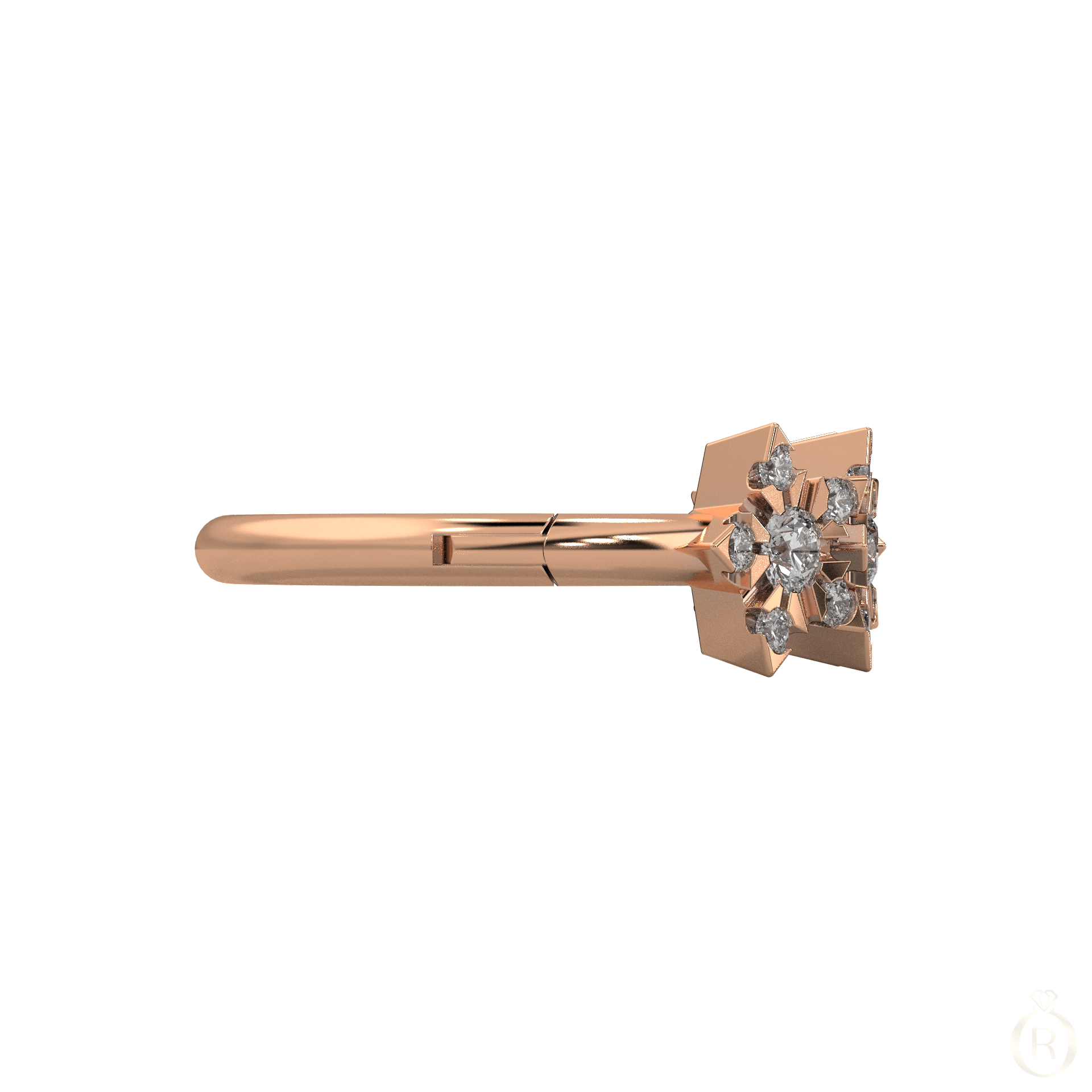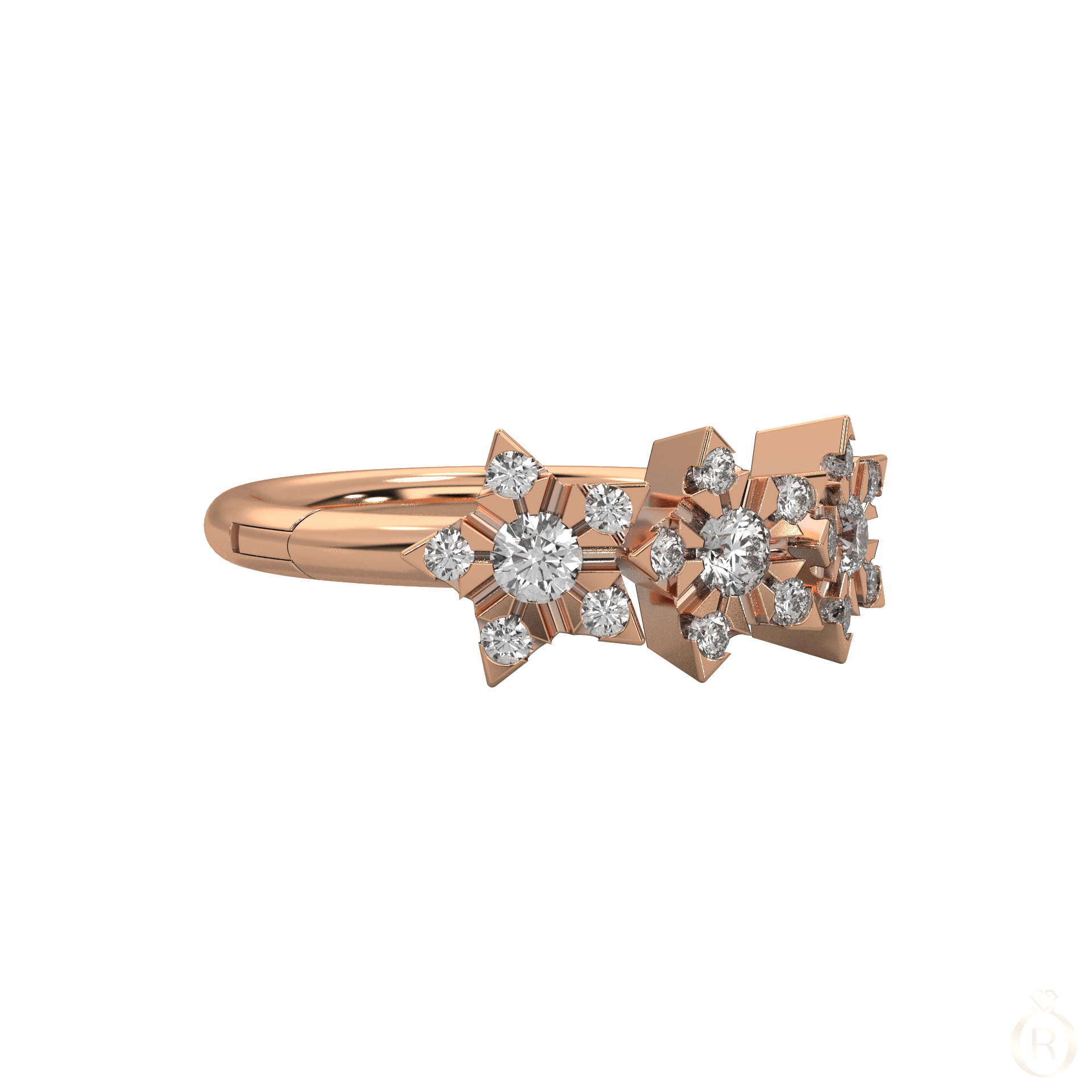 Like a crown of petals, Rosé Corolle arranges three diamond blossoms in graceful symmetry. Set in 18k rose gold, this piece captures the essence of floral refinement – luminous, delicate, and full of character.
