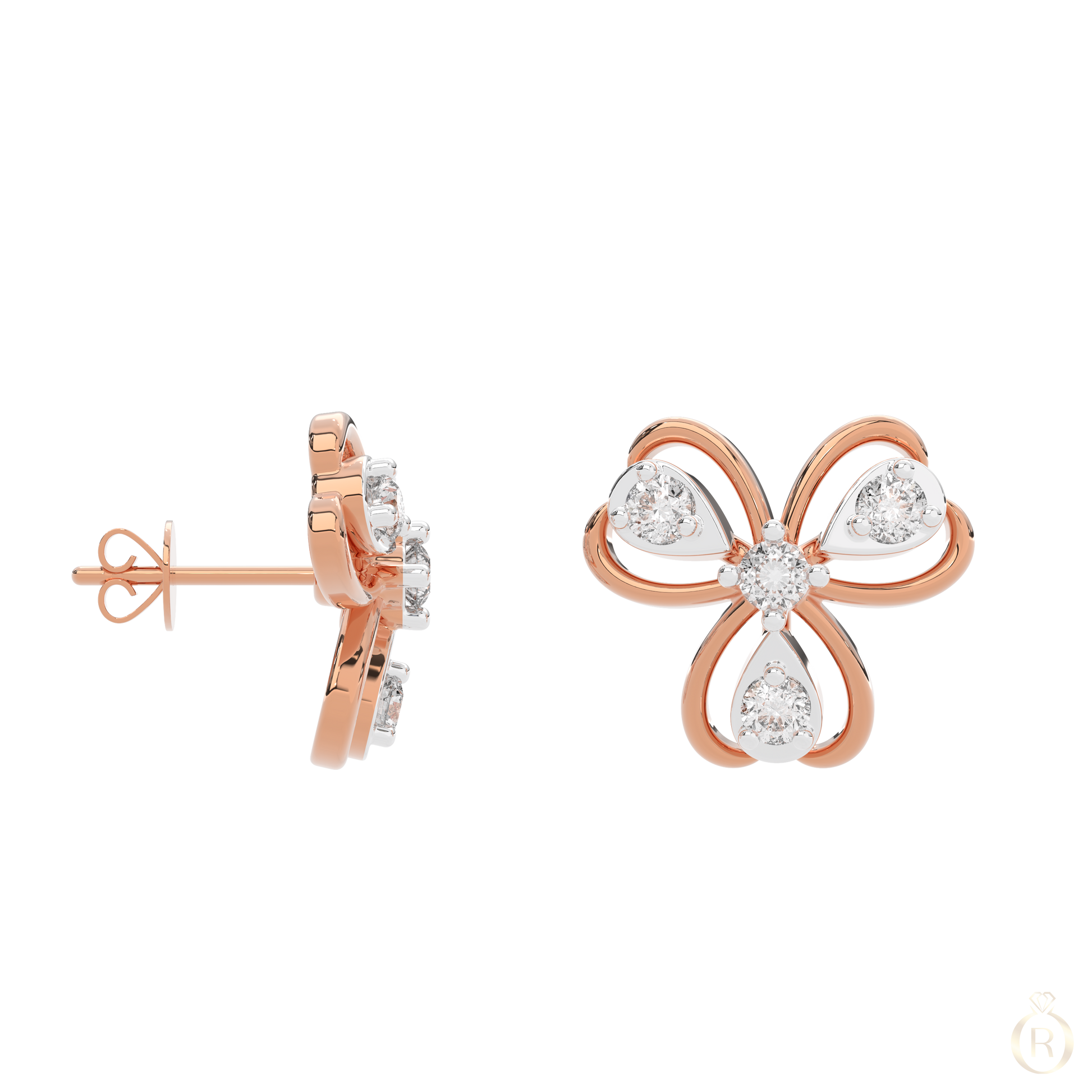 Rosé Caprice is a charming stud earring in rose gold, designed like a stylised four-leaf clover set with eight brilliant diamonds. The pear-shaped stones resemble delicate petals, giving the design a playful yet refined character – a radiant symbol of elegance and good fortune.