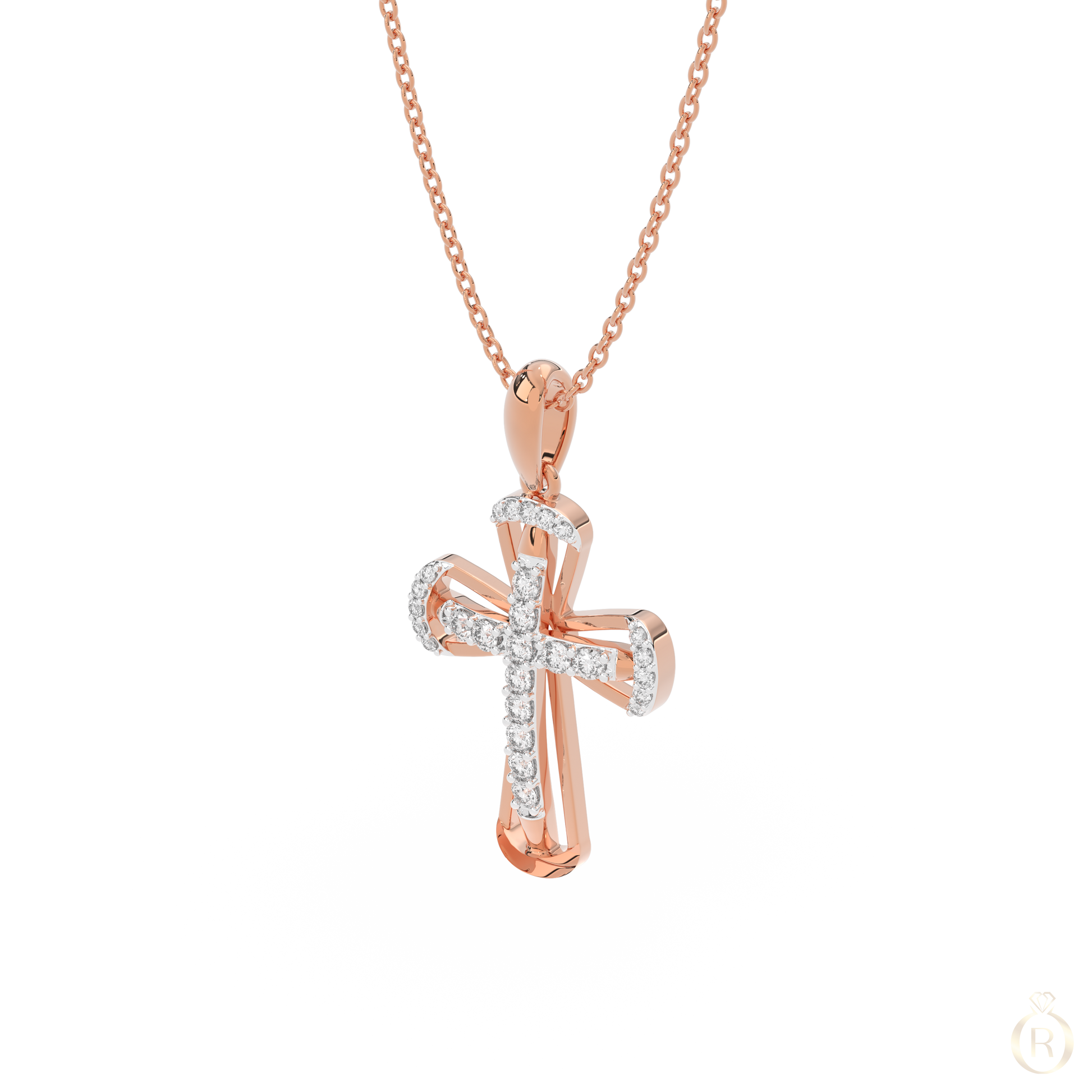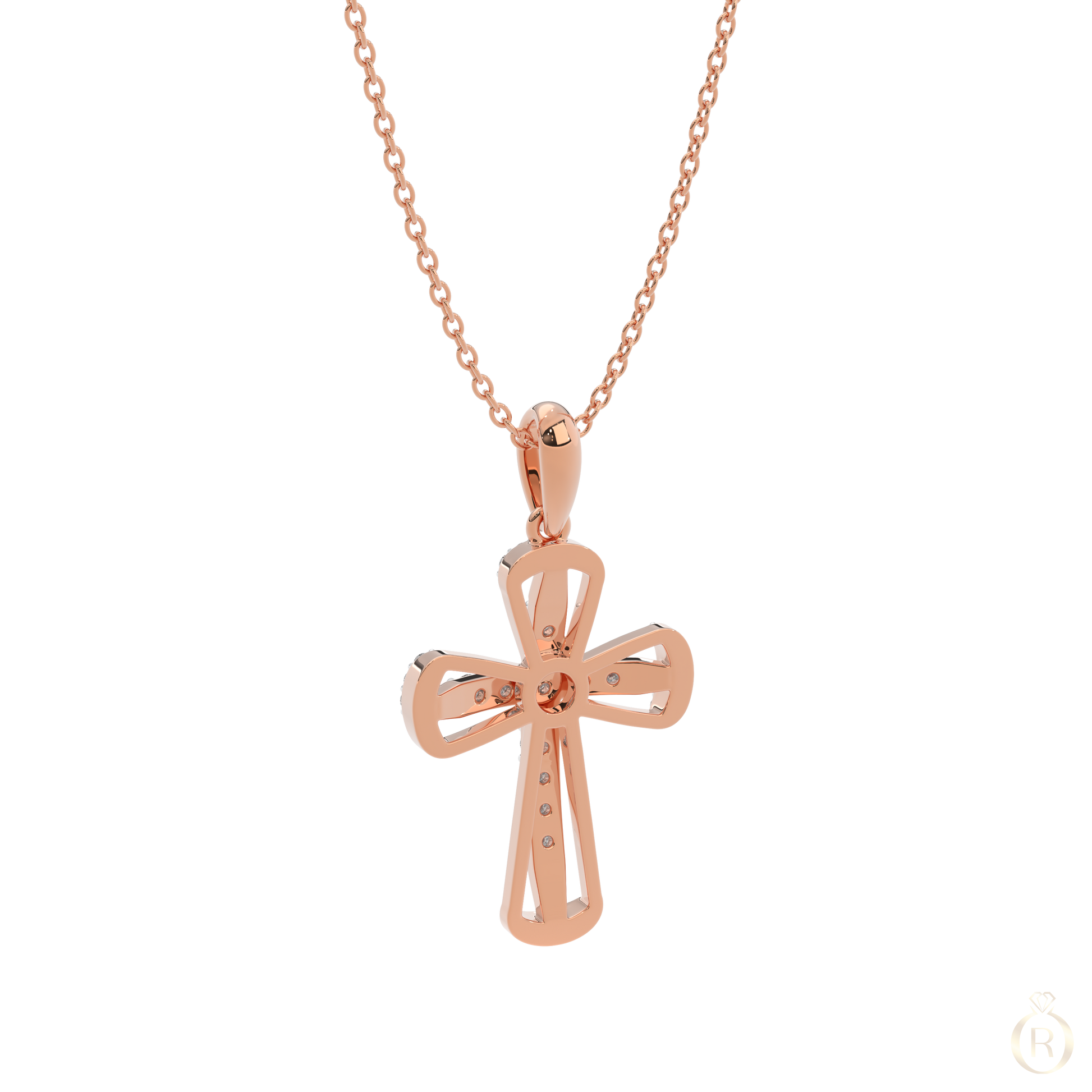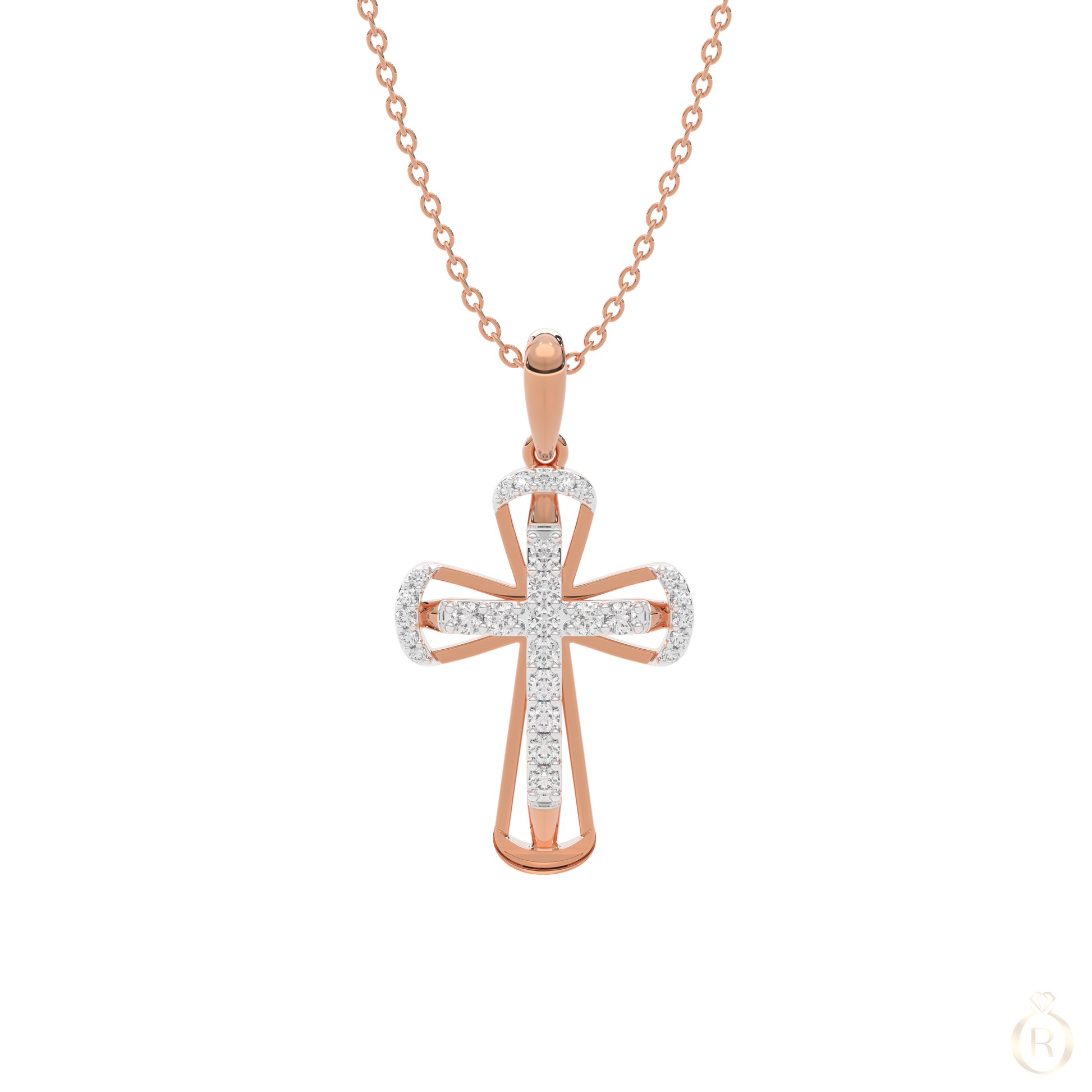 Rosé Céleste embodies celestial elegance in a contemporary form. The delicate cross in 18K rose gold is adorned with 32 sparkling diamonds, radiating subtle brilliance – a refined piece with graceful symbolism and timeless allure. (Delivered without chain)