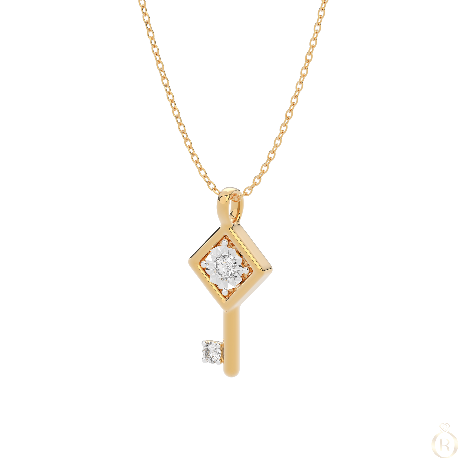 A key to the heart: The Rosé Clé de Cœur pendant in 18K yellow gold enchants with its delicate symbolism. Two brilliant-cut diamonds add radiant highlights, giving the design a special meaning — an elegant piece of jewellery, perfect as a gift or for deeply personal moments.