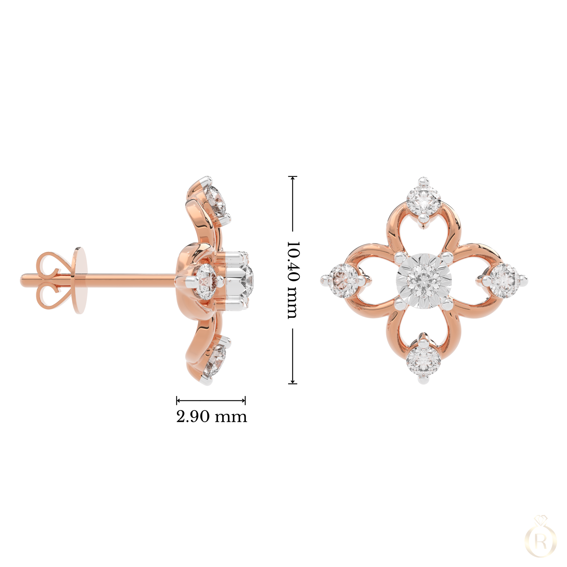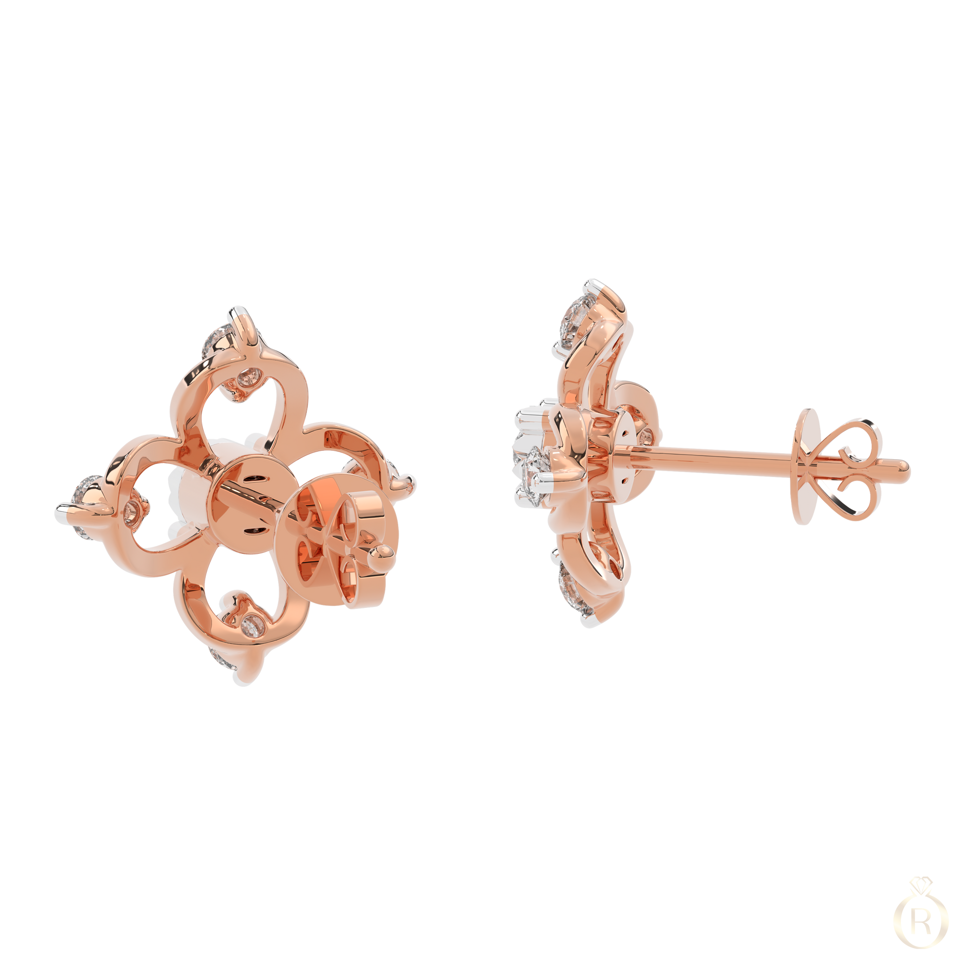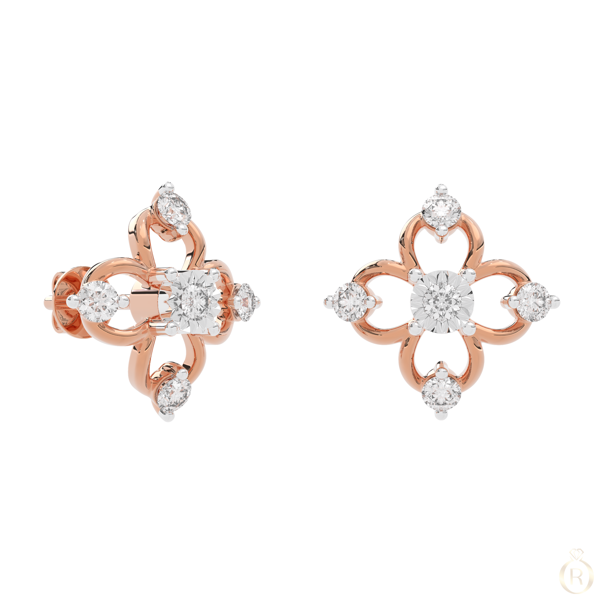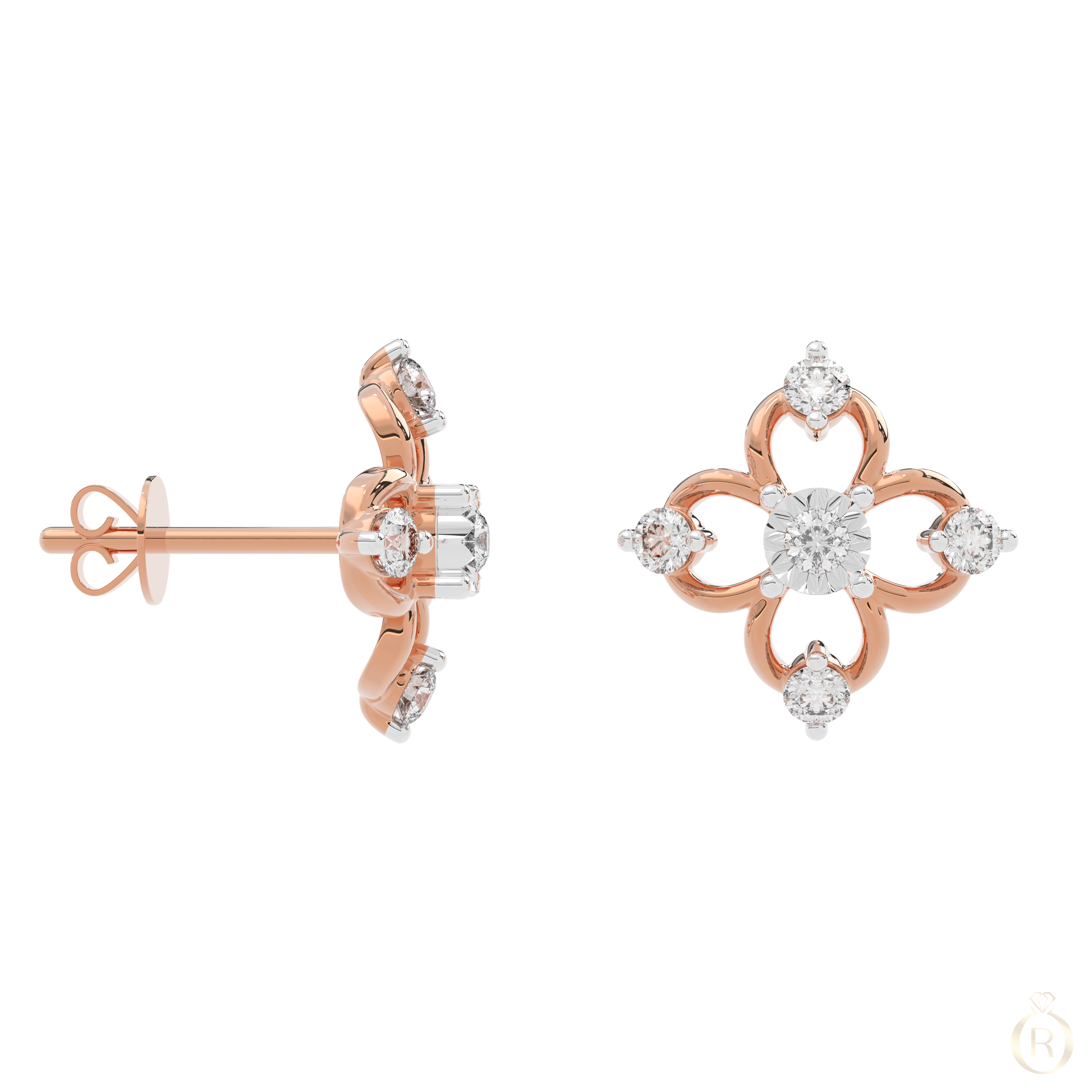 Rosé Épanouie resembles a flower in full bloom. Crafted from 18K rose gold, these studs unfold in a soft floral silhouette, set with delicate diamonds. A quiet moment of blossoming – feminine, luminous, and full of grace.