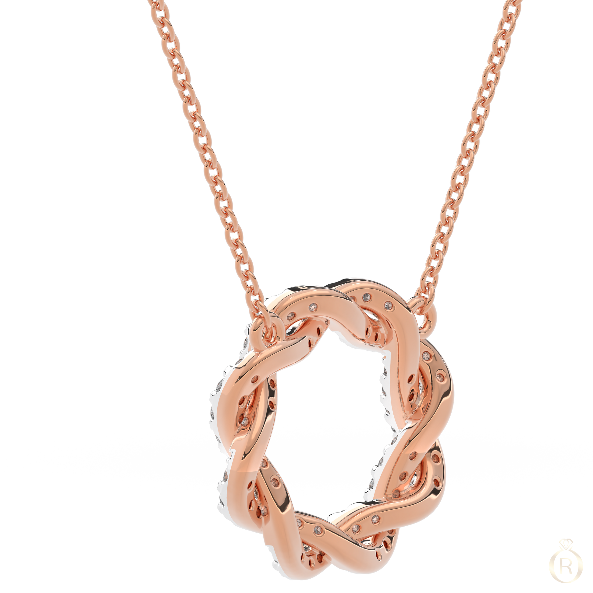 Rosé Galaxie Blanche - a captivating 18k rose gold circle pendant, adorned with 40 brilliant-cut diamonds that sparkle like a white galaxy across the night sky. The fine cable chain with spring clasp completes this celestial piece – a universe of elegance around your neck.