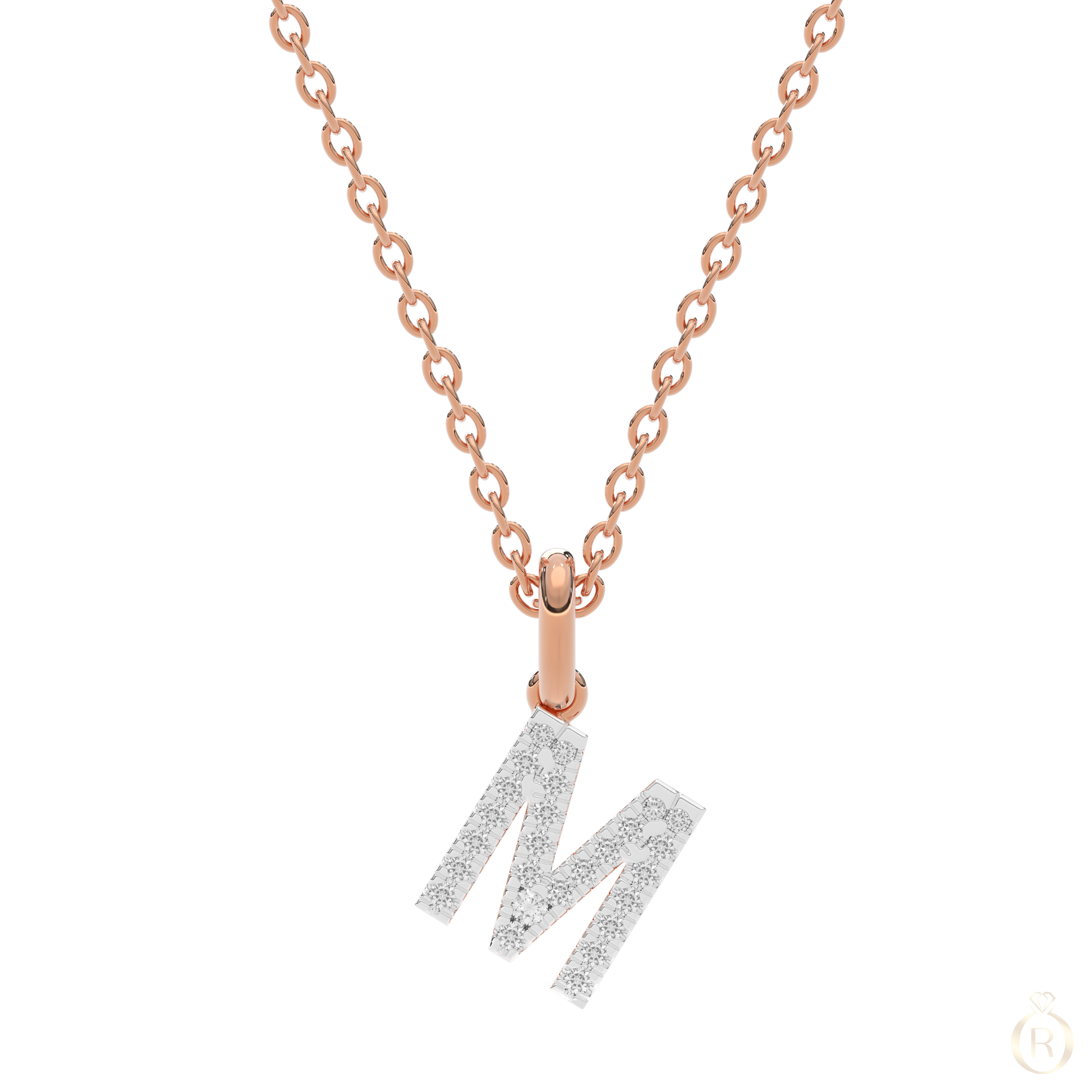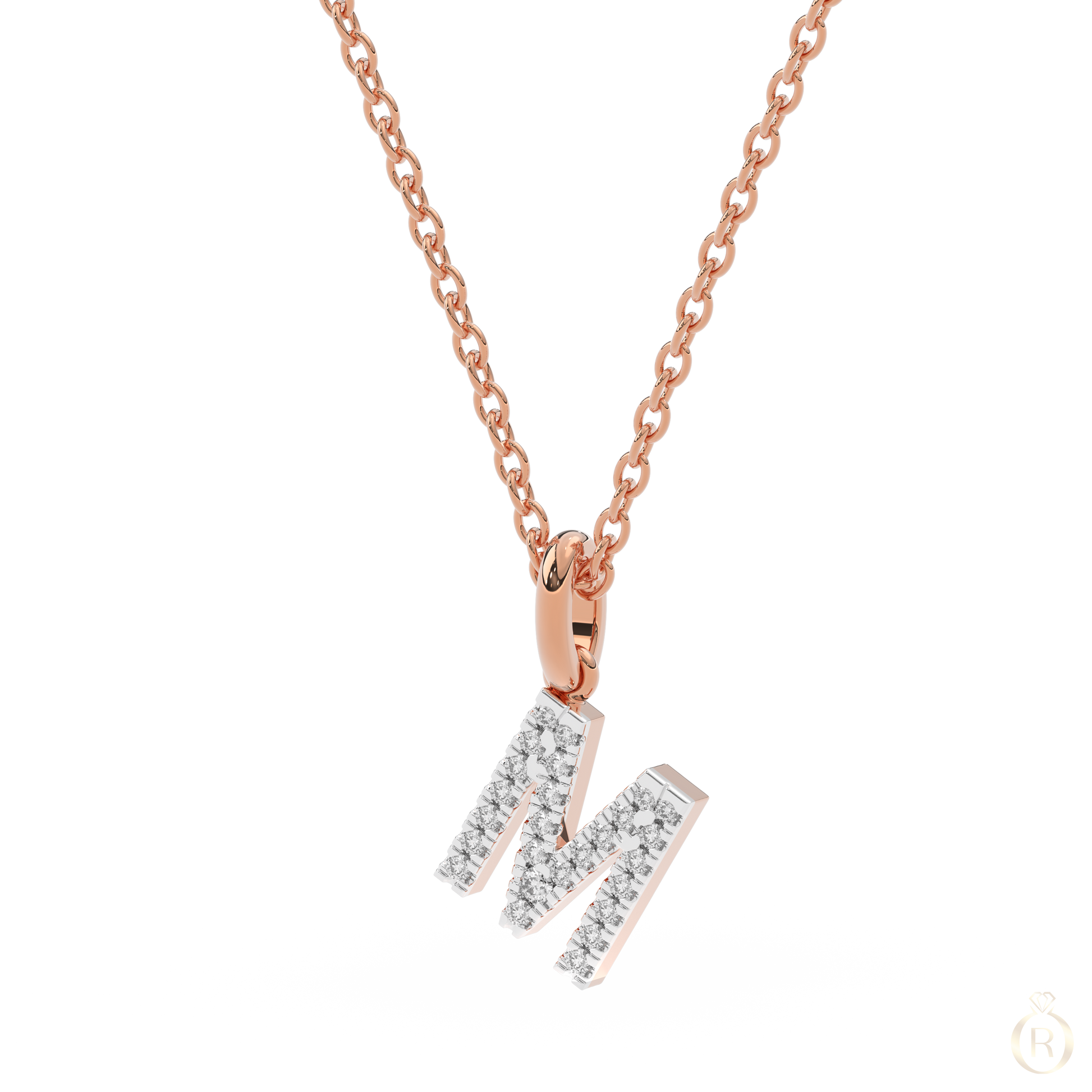 A symbol of personality: The Rosé Initiale M pendant in 18K rose gold brings letters to life with sparkling elegance. Set with 26 brilliant-cut diamonds and accompanied by a fine 45 cm cable chain with spring lock, this piece of jewellery is a timeless expression of individuality and style.