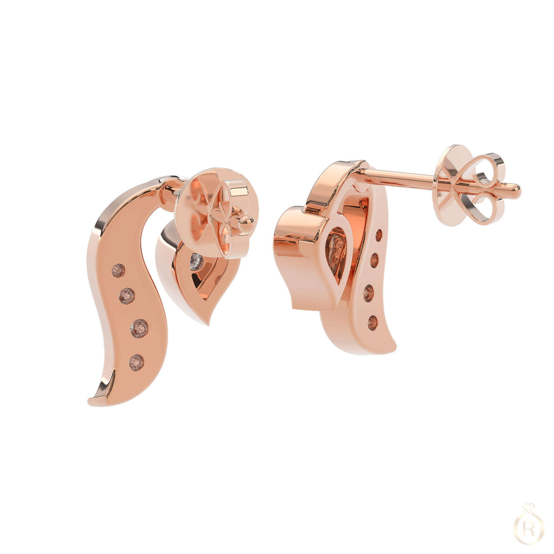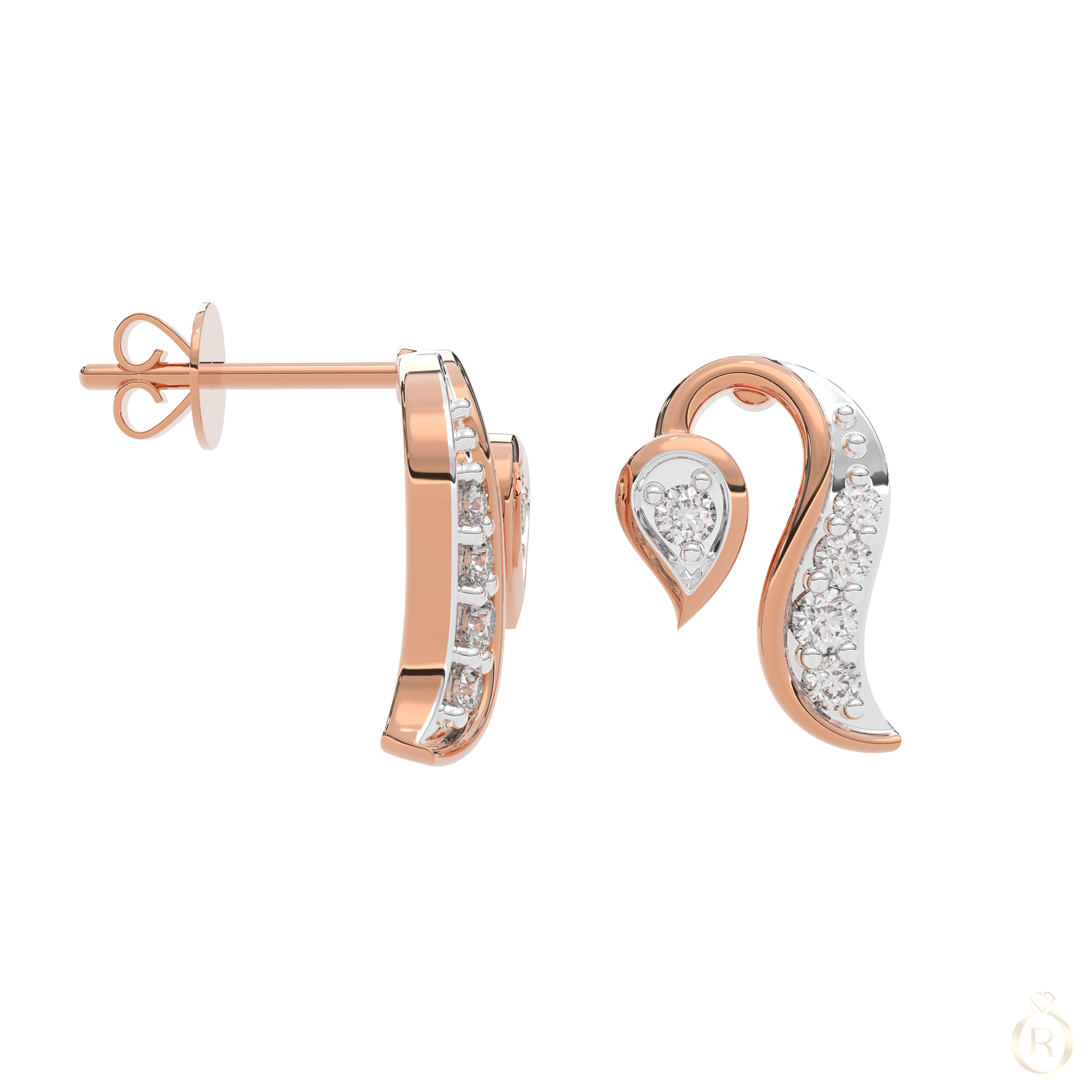 Delicate lines and floral elegance meet in Rosé Lysiane, a pair of gracefully curved stud earrings in 18k rose gold. Inspired by stylised petals and highlighted by a total of 10 sparkling diamonds – graceful and expressive.