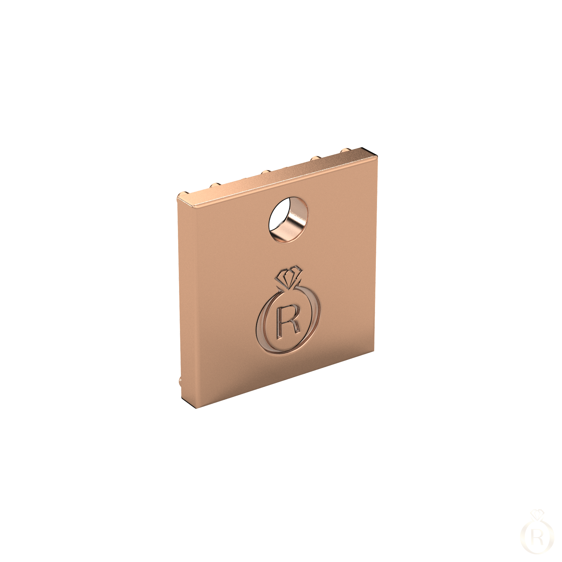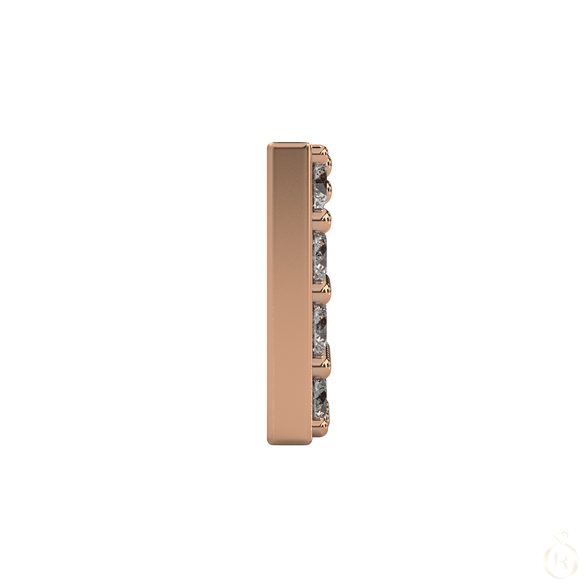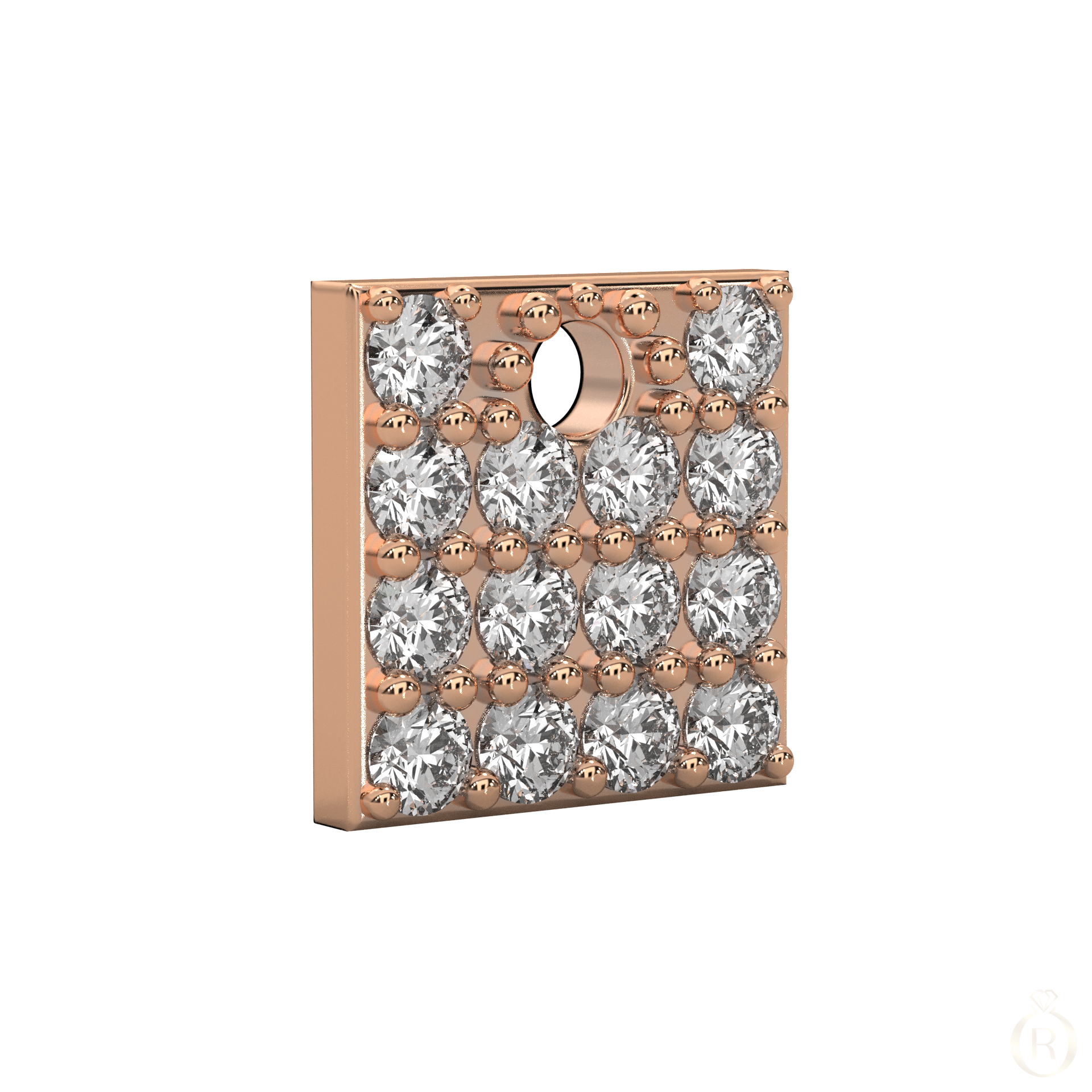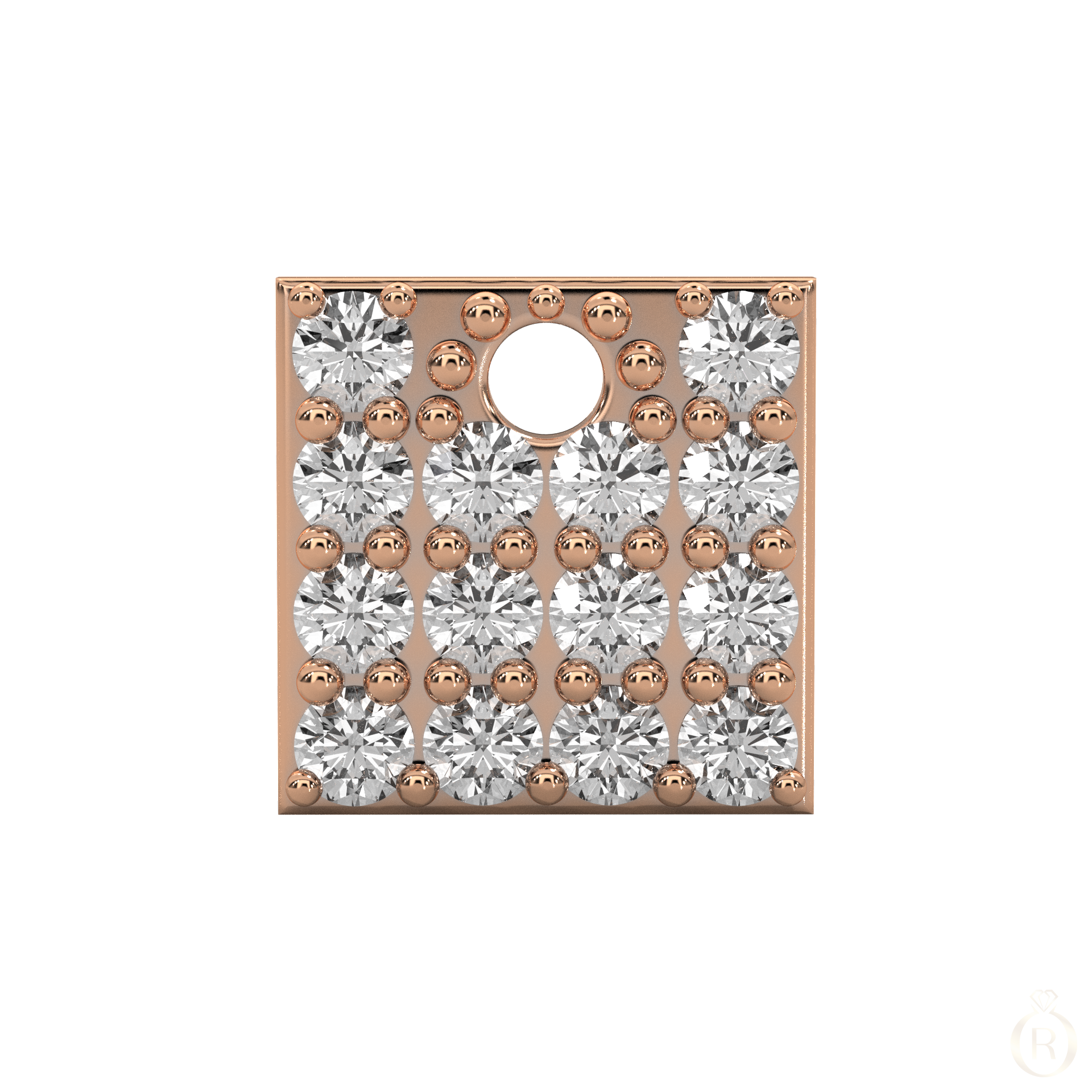 A miniature built with intention. Rosé Matrice unites precision and brilliance in a structured design: a square of 18k rose gold, set with a grid of diamonds and pierced with a single round opening. Minimal, bold, quietly architectural.