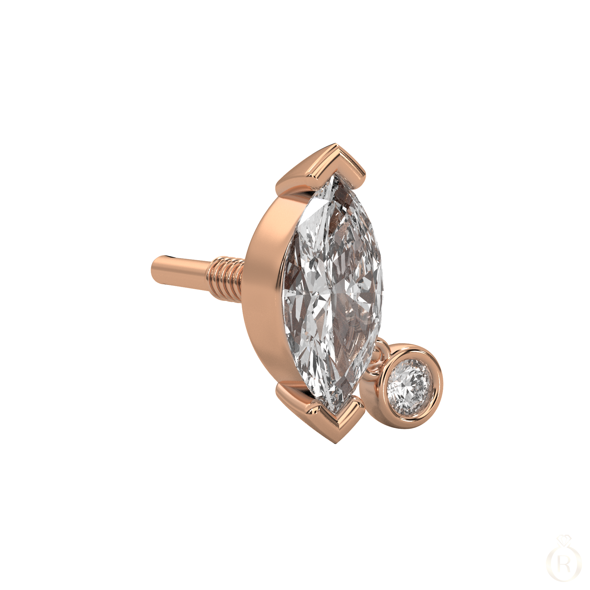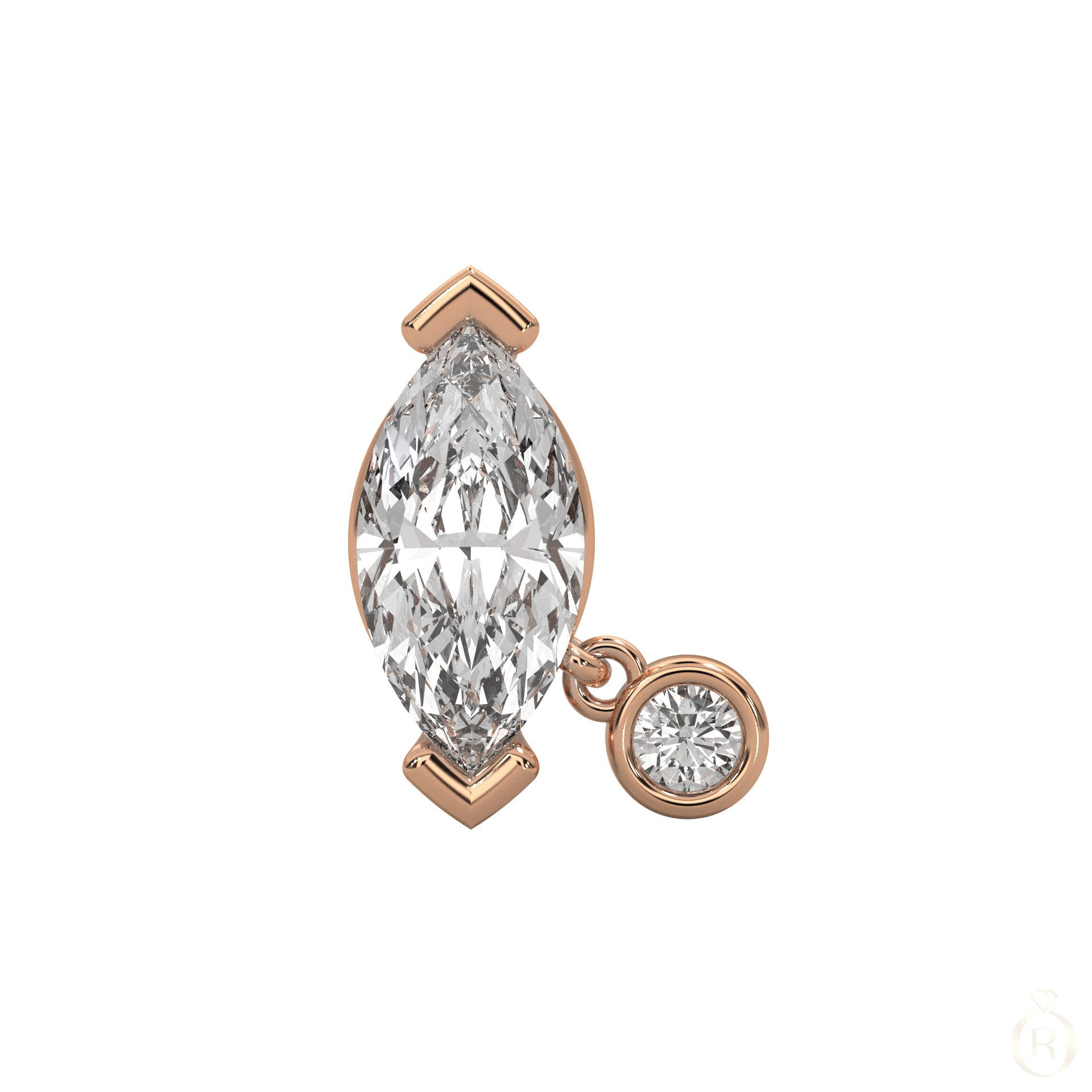 Delicate yet expressive – Rosé Occhiata captures the shimmer of a fleeting glance. A marquise-cut diamond sits in soft rose gold, complemented by a round diamond that moves with subtle elegance. Light in feel, refined in detail.