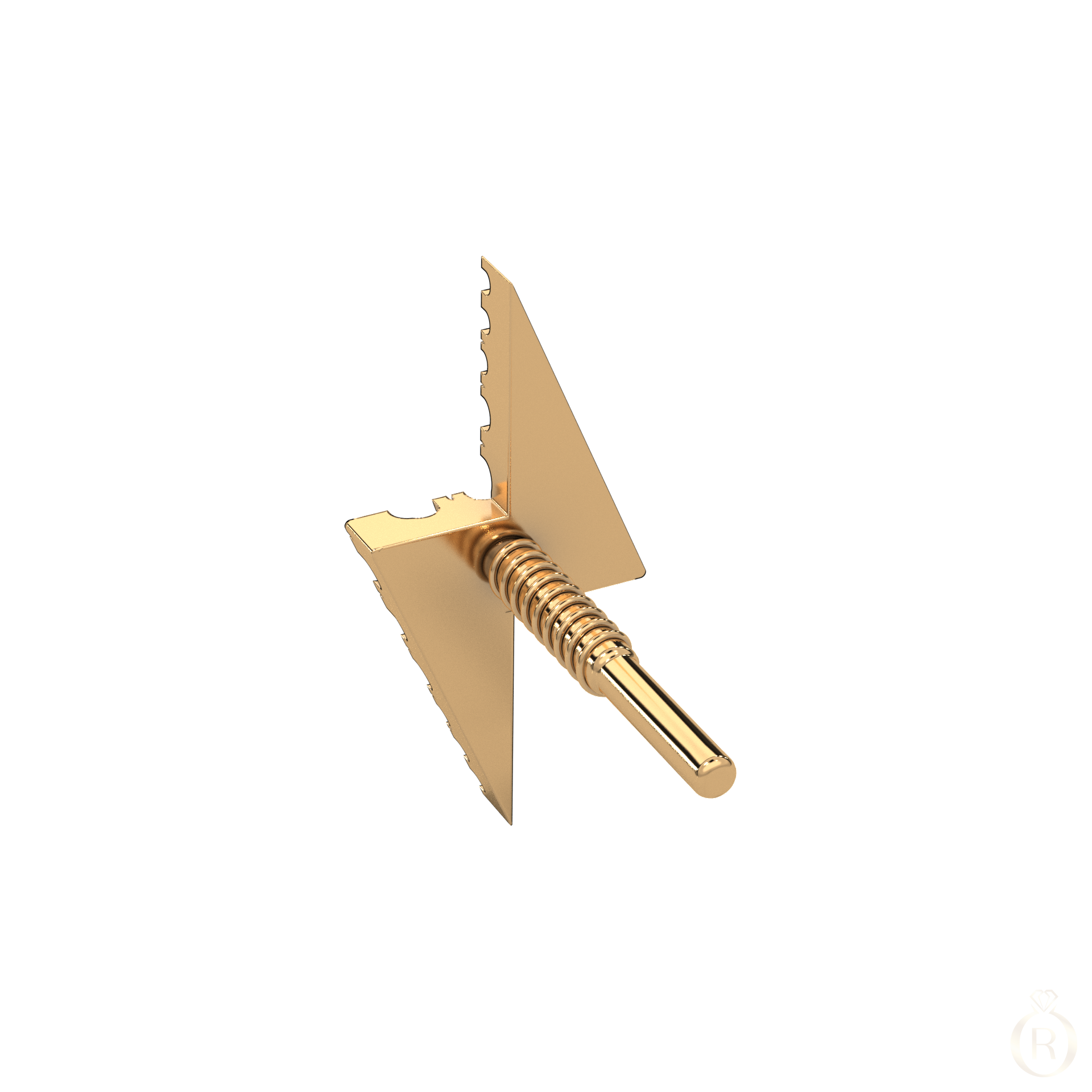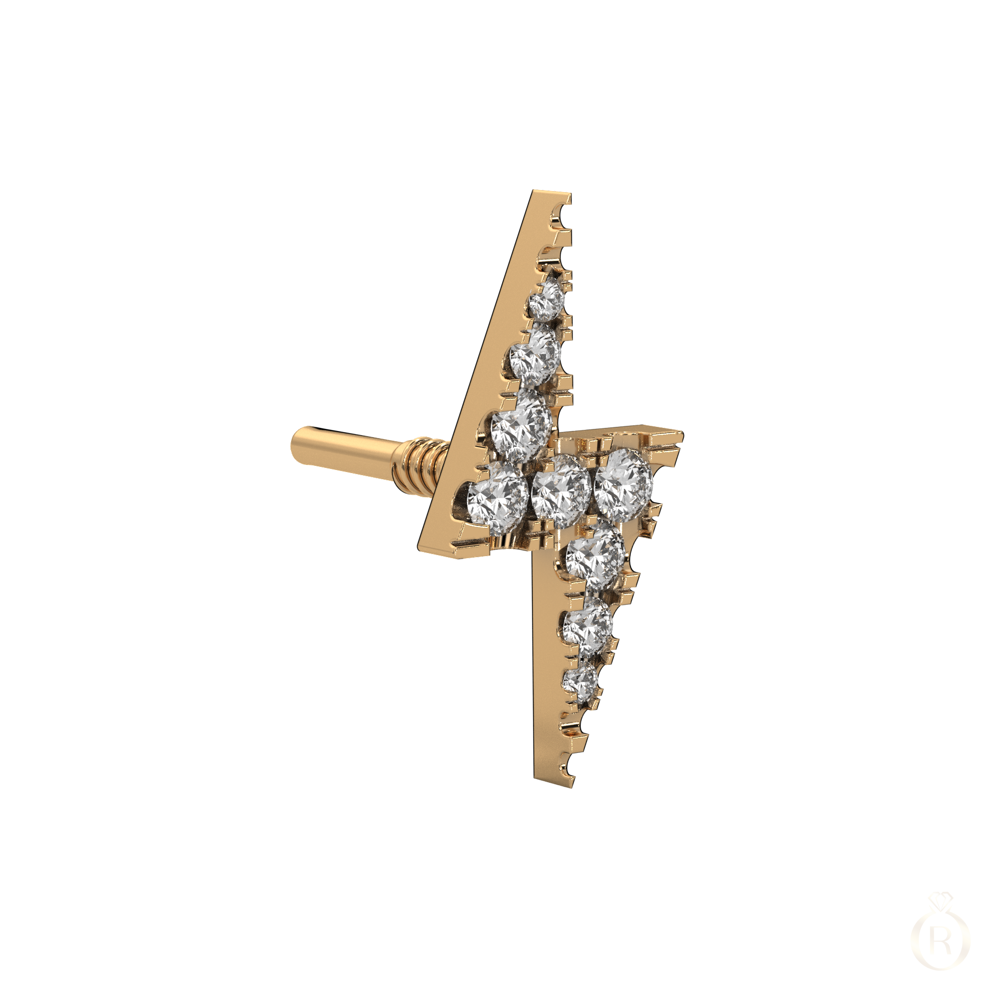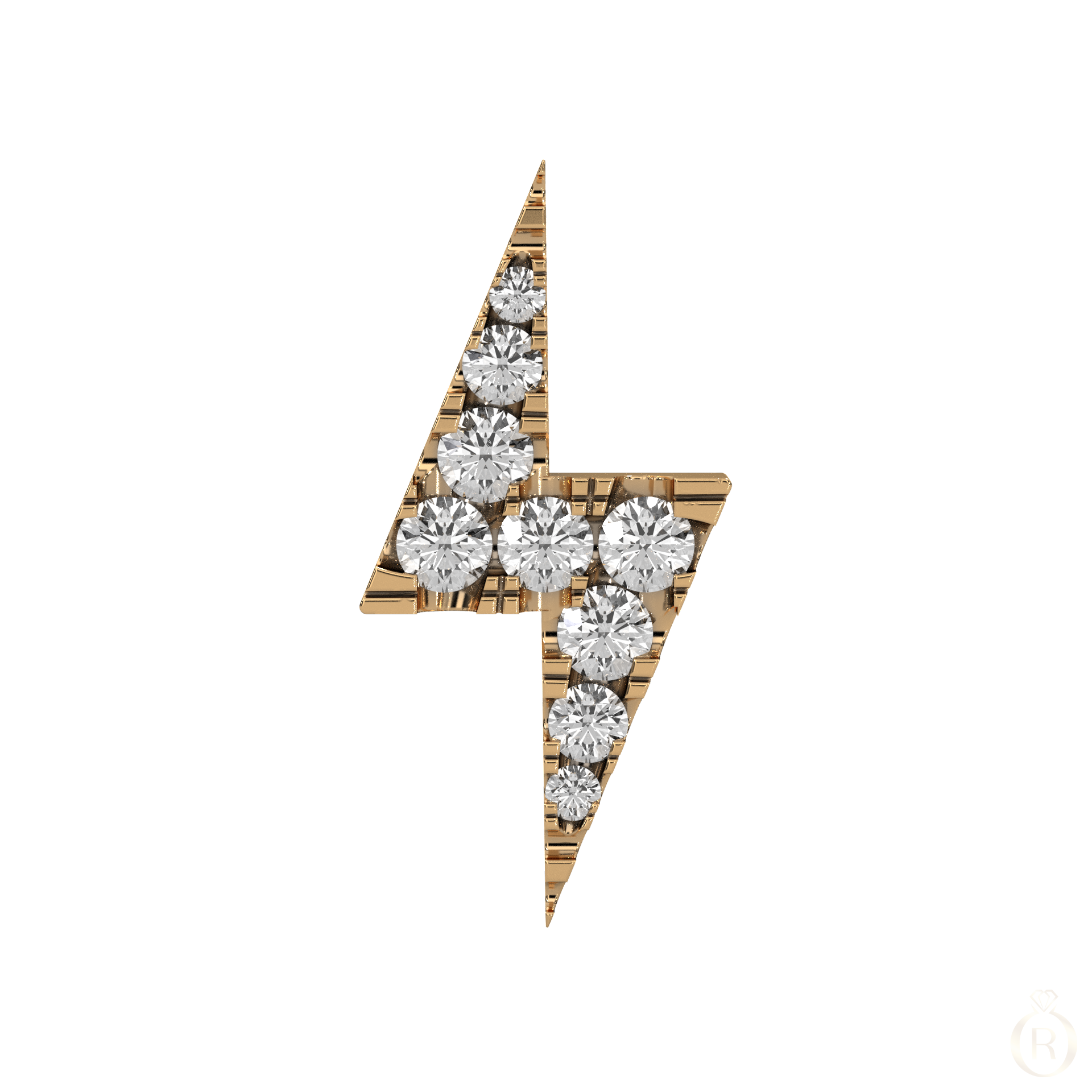 Lightning meets luxury. Rosé Saetta combines the power of a sharp geometric form with the softness of 18k rose gold. Set with brilliant diamonds, this design sparks with light and intention – made to shine on ear or nose.