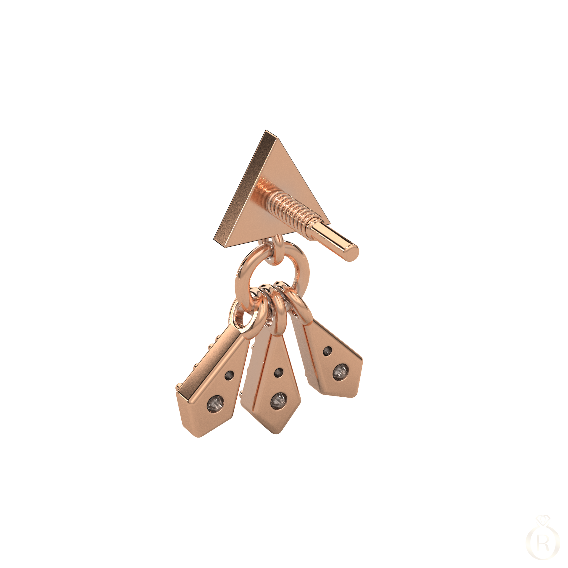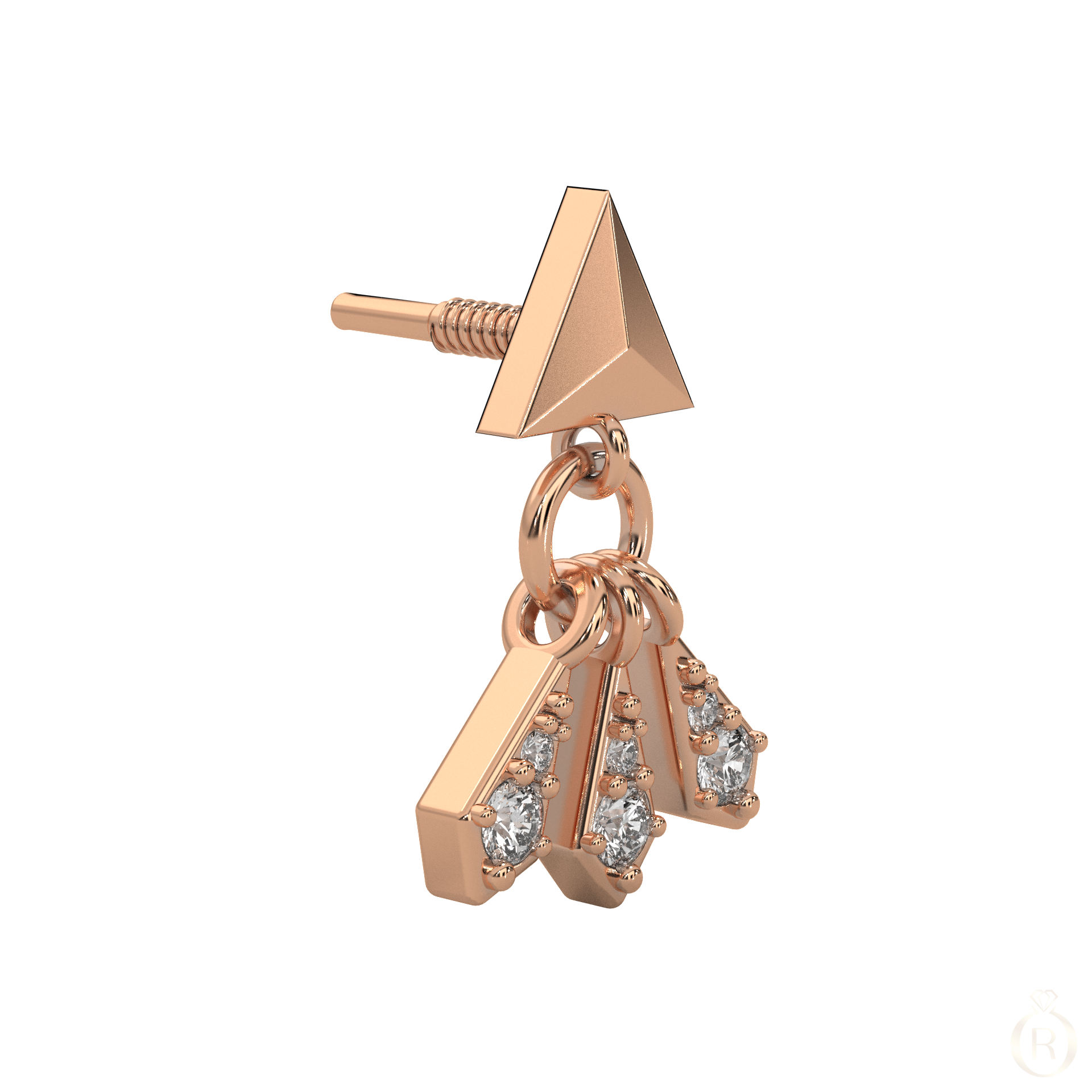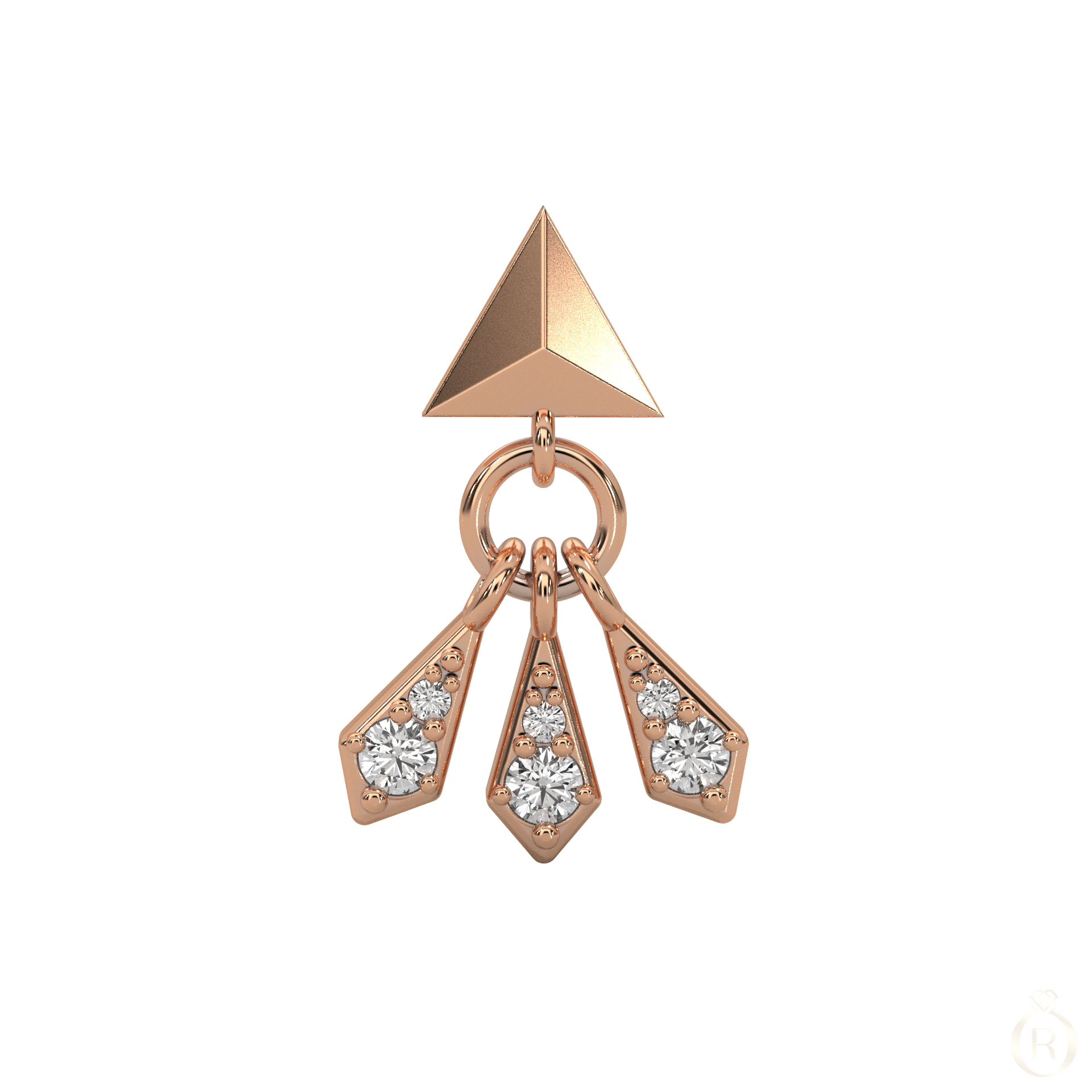 A design in motion. Inspired by the silhouette of an arrow, Rosé Vectora balances sharp geometry with subtle brilliance. Three round-cut diamonds bring a refined glow to the warm tones of 18k rose gold. Clean in shape, striking in presence.