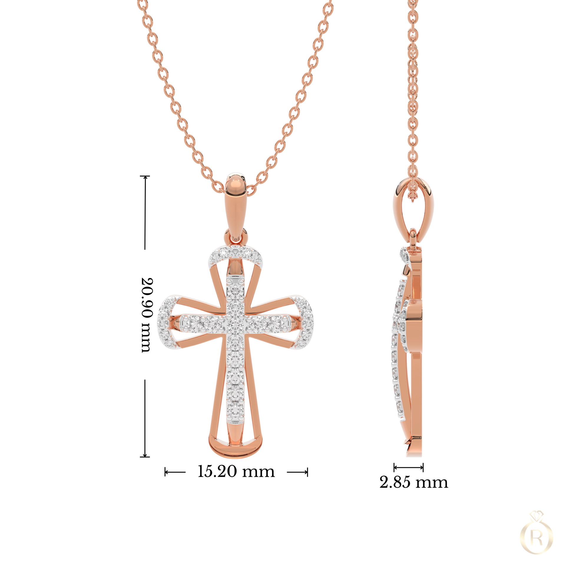 Rosé Céleste incarne l’élégance céleste dans une forme contemporaine. Cette croix délicate en or rose 18 carats, sertie de 32 diamants étincelants, révèle une lumière douce – une création précieuse, empreinte de sens et de raffinement. (Livré sans chaîne)